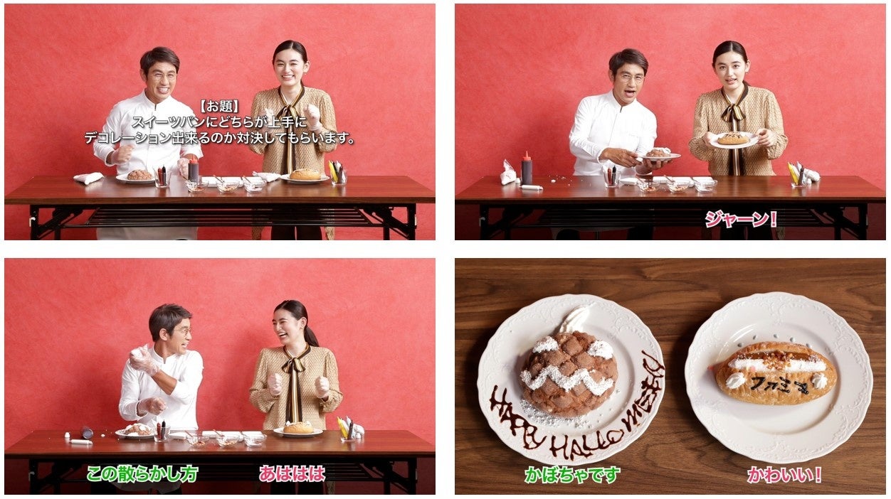 ファミリーマート「感動!スイーツパン」好評記念 ハロウィン限定企画八木莉可子さんVS安食雄二シェフのデコレーション対決動画を公開!八木さん、安食シェフの思わぬハプニングに爆笑!
