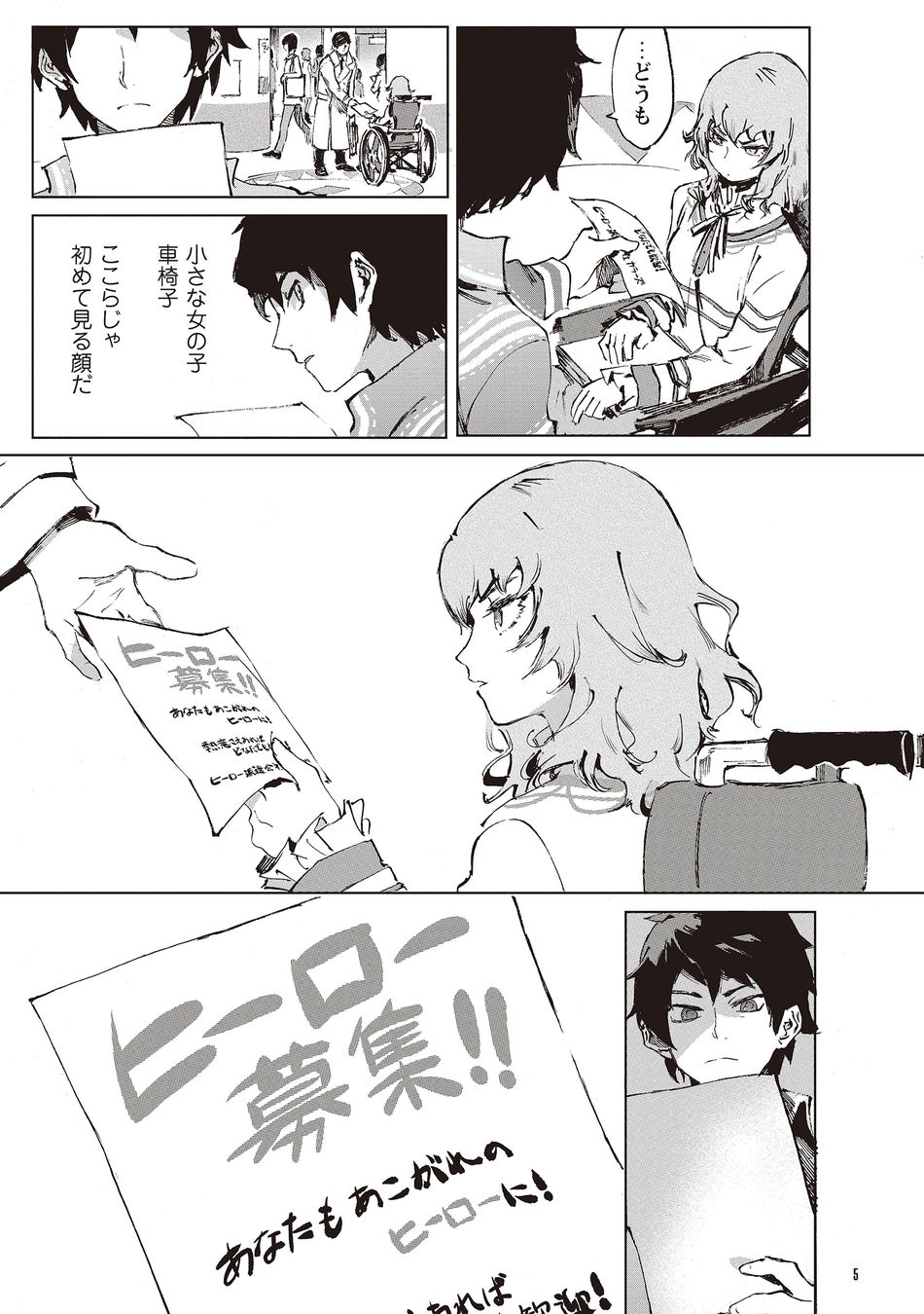 そうでもなきゃ、車いすに乗ったむくれっ面の女が配ってる手書きの『ヒーロー募集』のビラになんて、