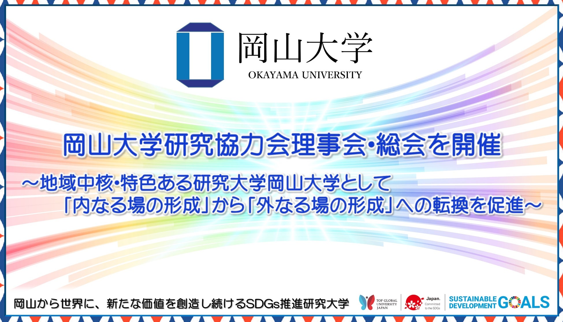 【岡山大学】岡山大学研究協力会理事会・総会を開催 ~地域中核・特色ある研究大学 岡山大学として「内なる場の形成」から「外なる場の形成」への転換を促進~