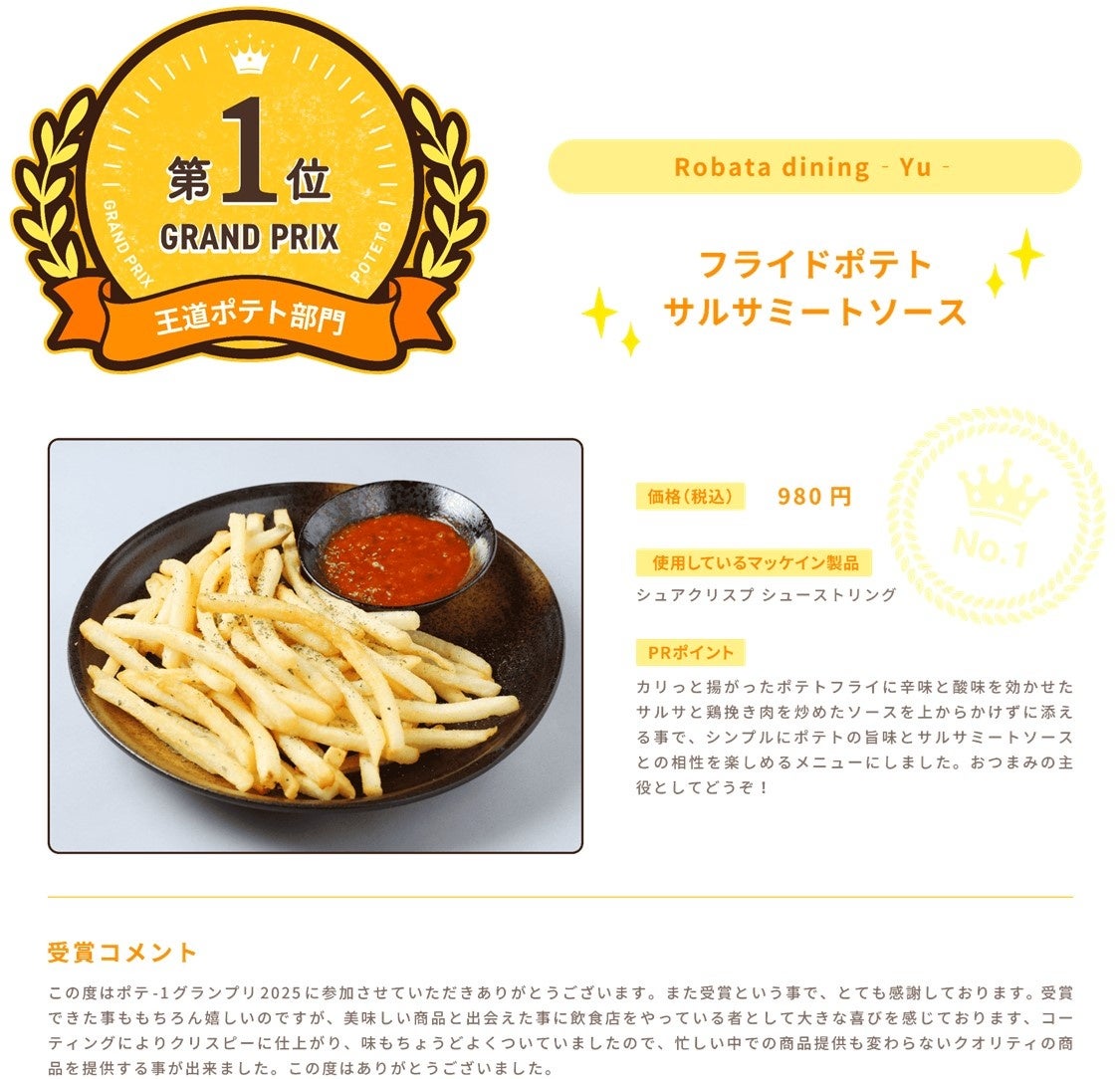 ぐるなび×日本マッケイン・フーズポテ-1グランプリ2025 結果発表!