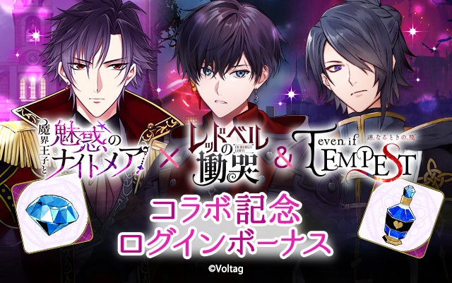株式会社ボルテージ(本社:東京都渋谷区 代表取締役:津谷 祐司)は、提供中のボル恋人気タイトル「魔界王子と魅惑のナイトメア」がAmuLit作品の「レッドベルの慟哭」および「even if TEMPEST」シリーズとのコラボレーションキャンペーンを10月8日(水)より開始したことをお知らせいたします。