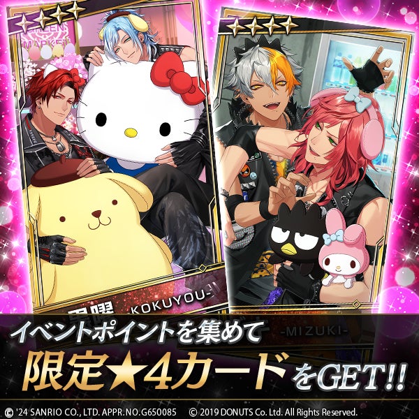 著作権表記 © '24 SANRIO CO., LTD. APPR. NO. G650085 © 2019 DONUTS Co. Ltd. All Rights.