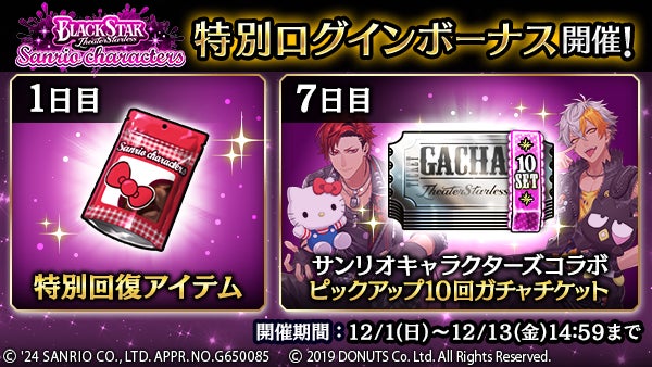 株式会社DONUTS(東京都渋⾕区、代表取締役:⻄村啓成)は、ワルメン応援&リズムゲーム『ブラックスター -Theater Starless-』(略称:ブラスタ)にて、2024年12月1日(日)15時より、サンリオキャラクターズコラボイベント「BLACKSTAR×Sanrio characters」を開催いたします。