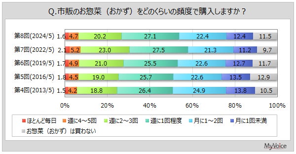 マイボイスコム株式会社(東京都千代田区、代表取締役社長:高井和久)は、8回目となる『お惣菜』に関するインターネット調査を2024年5月1日~7日に実施しました。