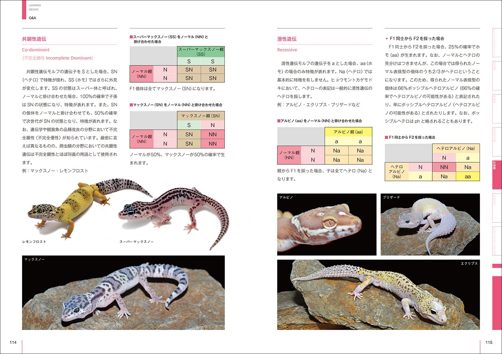 モルフって何?/品種はどのように区分されるの?/品種の確率計算は難しいの?/ライン名は自由に付けてかまわないの?/品種によって飼育方法に差はあるの?/健康面に影響を及ぼす品種はあるの?