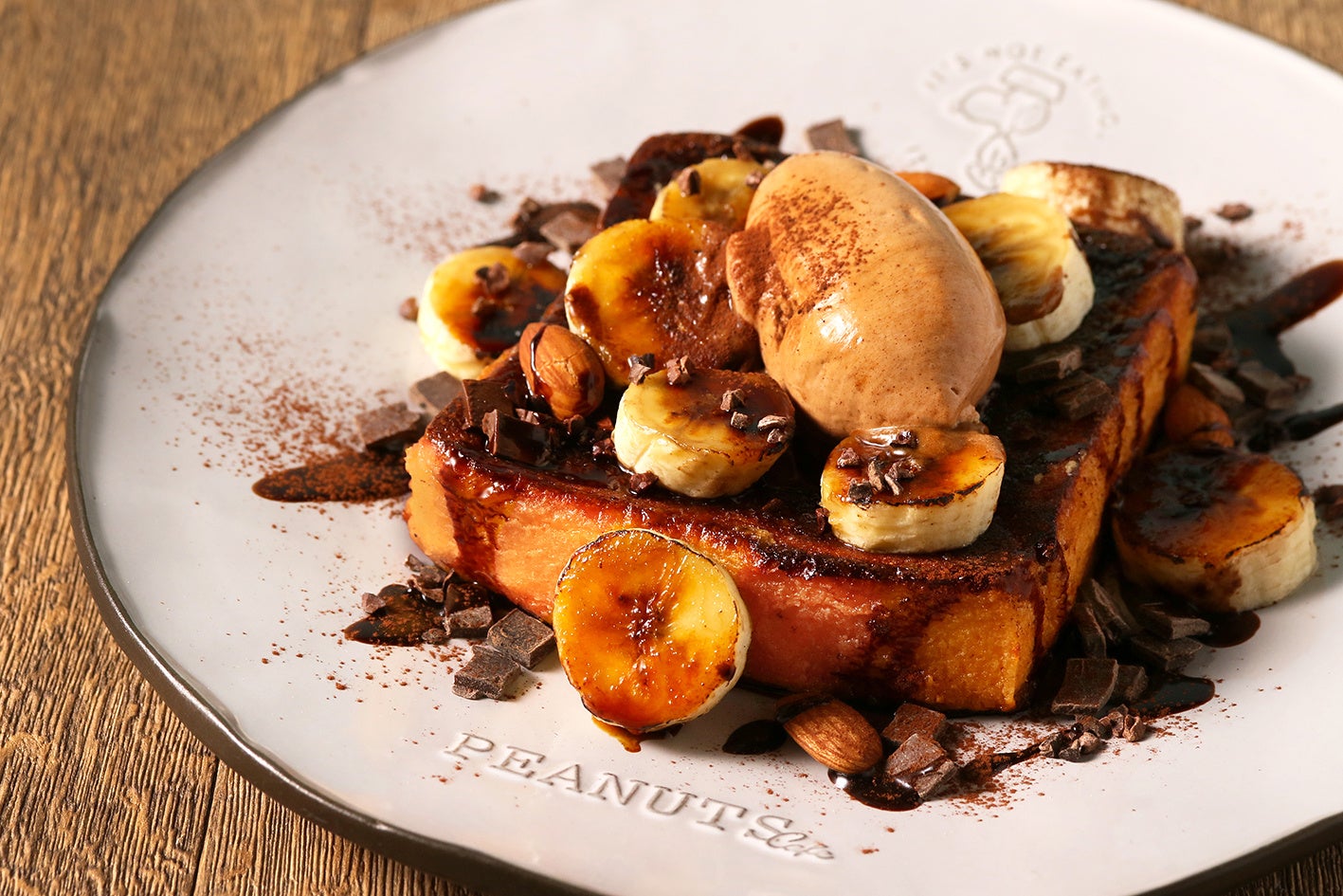 キャラメリゼしたバナナとアーモンド、グラノーラの香ばしさや食感が、チョコソースとベストマッチ。