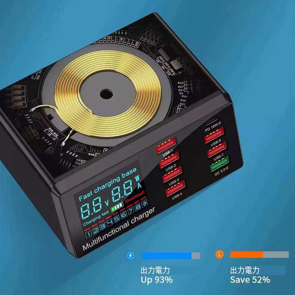 2.4A急速充電/QC 3.0急速充電/USB PD急速充電/ワイヤレス充電の4種類に対応しています。