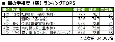 ■街の幸福度(駅)トップは、昨年13位から順位を上げた祇園