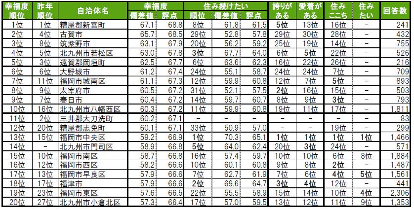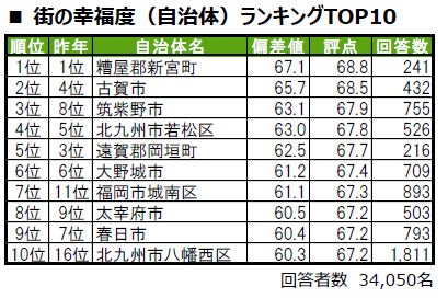 ■街の幸福度(自治体)トップは、2年連続で糟屋郡新宮町