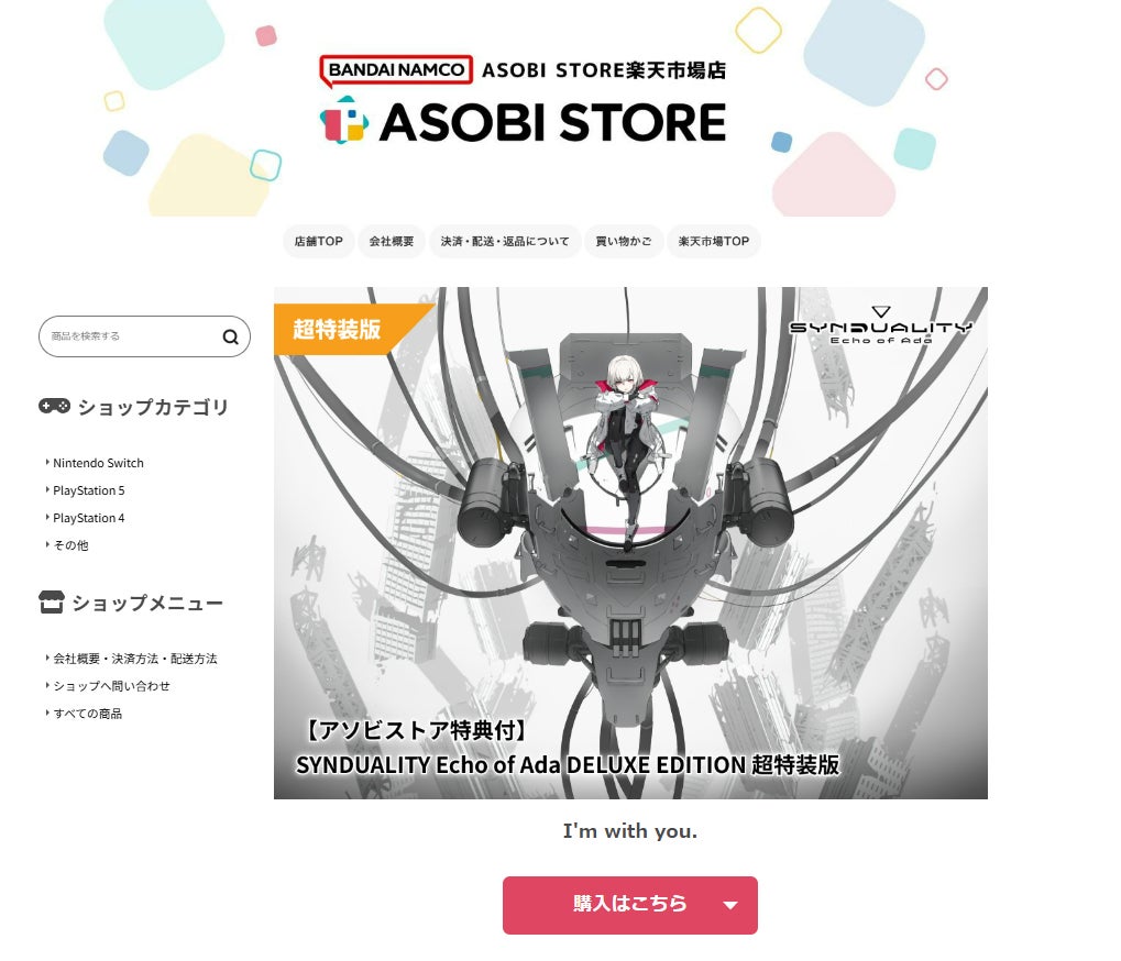 株式会社バンダイナムコエンターテインメントの公式エンタメコマースサイト『ASOBI STORE』の楽天市場支店につきまして、より商品を見つけやすく、より商品や特典内容がわかりやすく、店舗ページをリニューアルしたことをお知らせいたします。