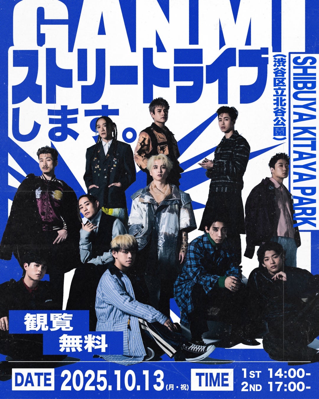 また先日、学校法人滋慶学園の全面協力によりフリーライブ(福岡、東京、大阪、名古屋、仙台)の決行、成功を収めたばかりのGANMIですが、10月13日(月・祝)SHIBUYA KITAYA PARK (渋谷区立北谷公園)にてストリートライブを決行する。更に、今年11月には10周年ツアーの開催も決定しており、ツアーファイナルはZepp DiverCity(TOKYO)で開催となる。