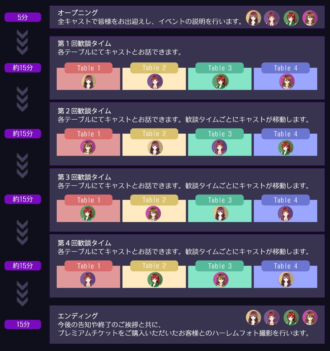 ※第1部は特別な「キャストお披露目タイム」をご用意しており、第1部のみ開店時間が10分ほど長くなる予定です。