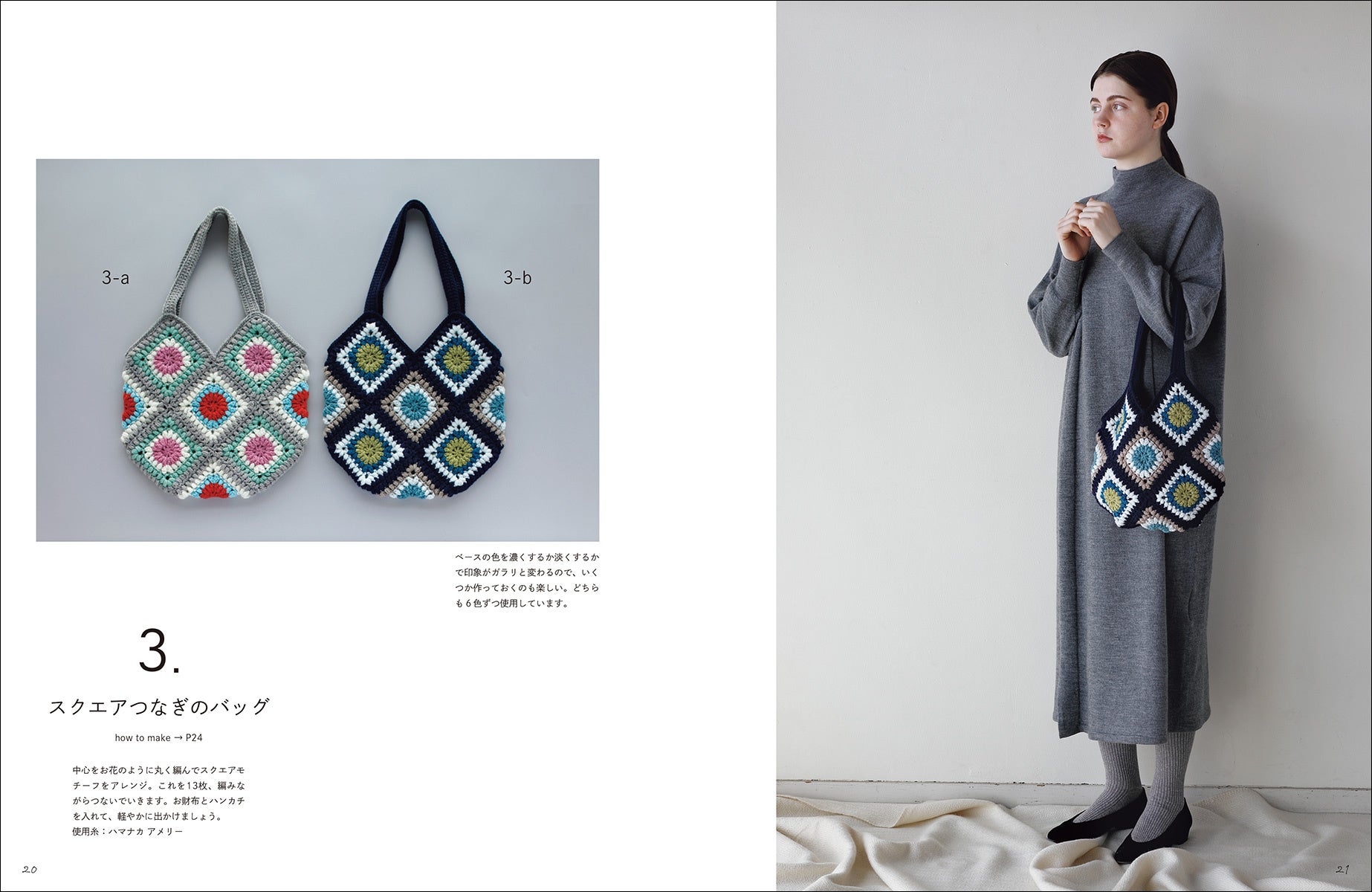 基本のマフラーやバッグ、ショール、マットやルームシューズまで23作品。