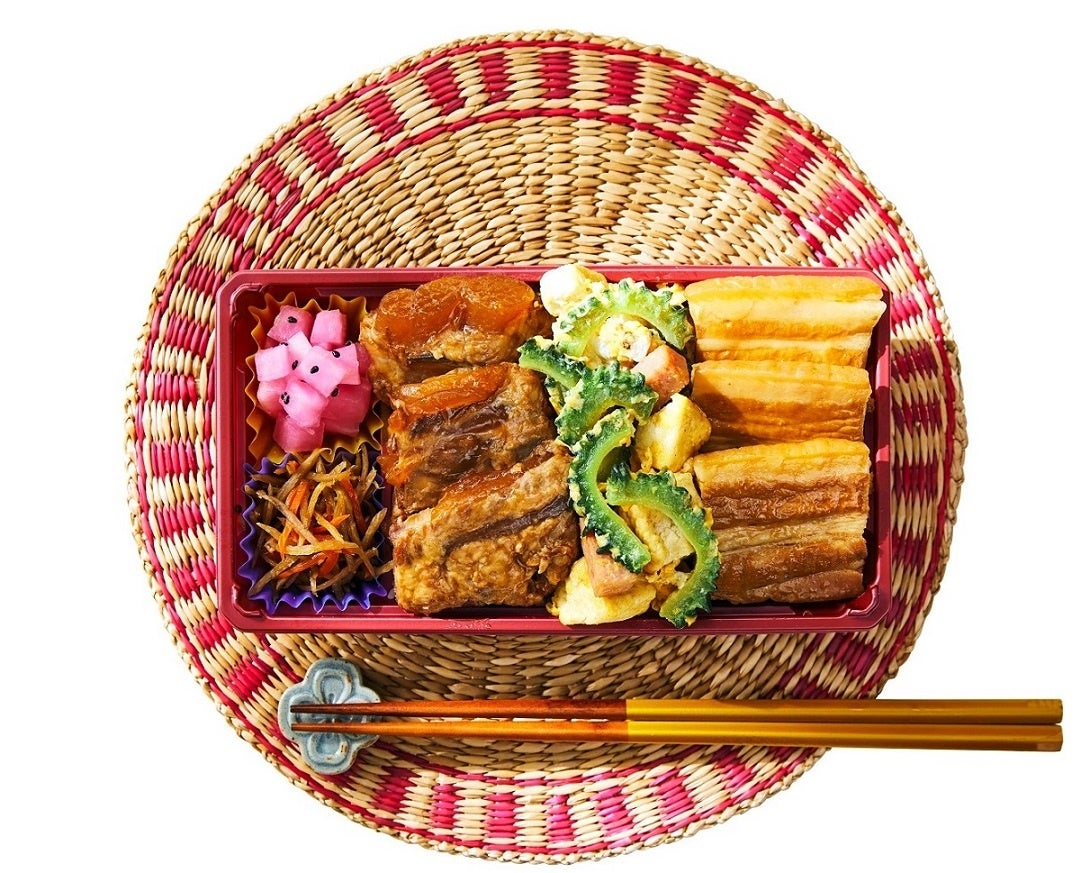 ソーキ、ラフテー、ゴーヤチャンプルーのうちなー自慢の3種類の味が1度で味わえる贅沢なお弁当。