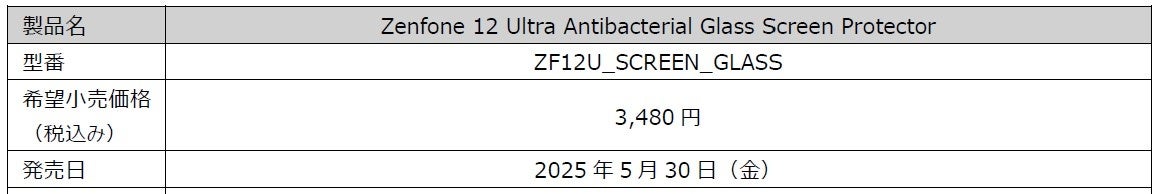 ●Zenfone 12 Ultra専用アクセサリの発売日および希望小売価格
