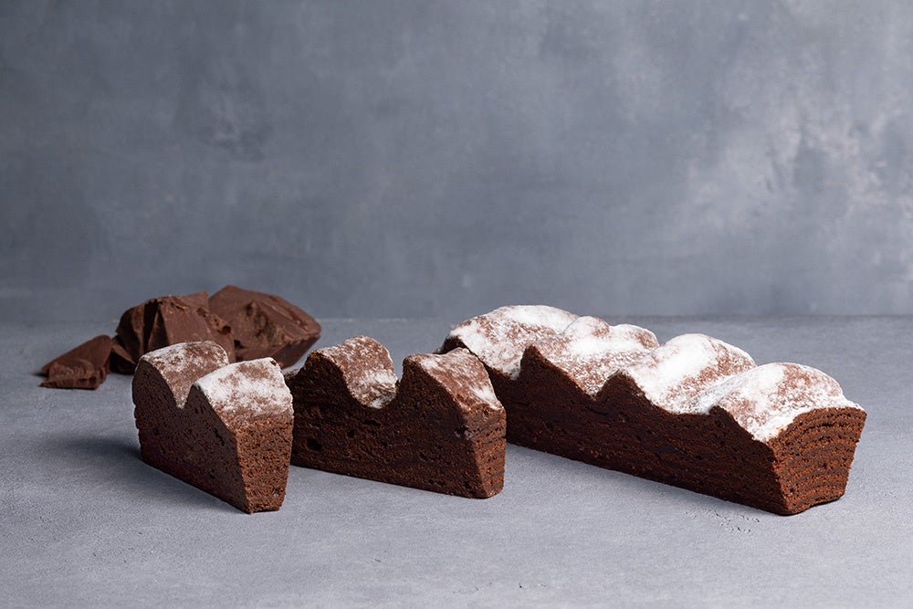 外はカリッと、中はしっとりと熟成。チョコレート生地を一層一層丹念に焼き上げ、カカオのコクと香りを贅沢に閉じ込めました。まろやかにくちどけるチョコレートのうまみを幾層にも積み重ねてたどり着いた、バームクーヘン専門店ならではのブラウニーです。