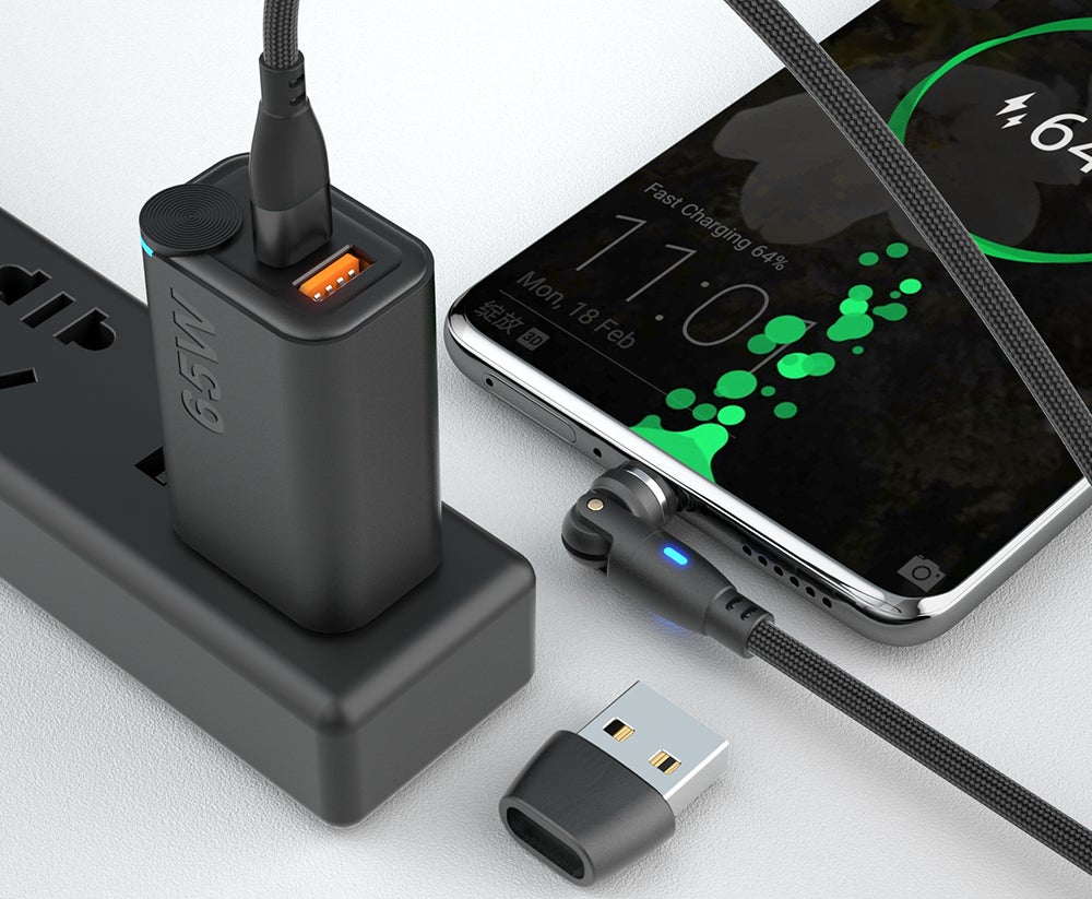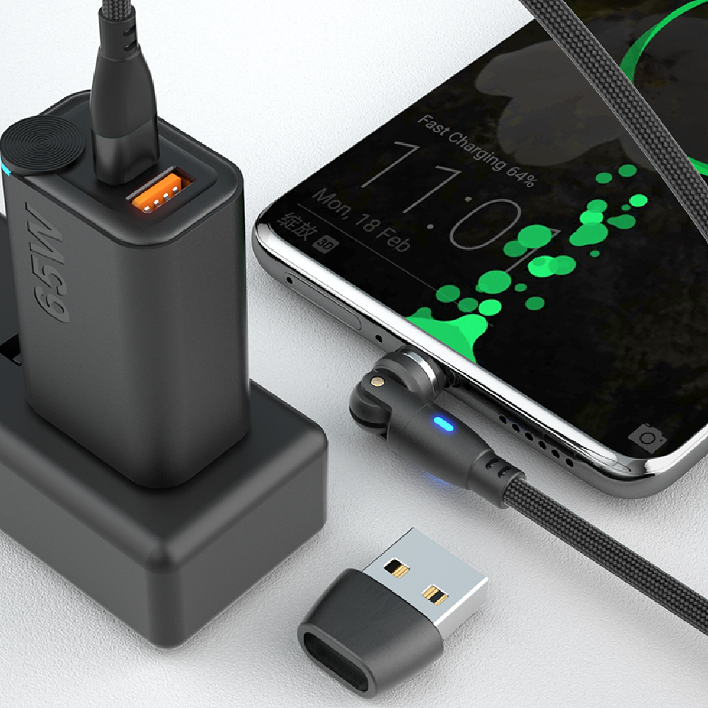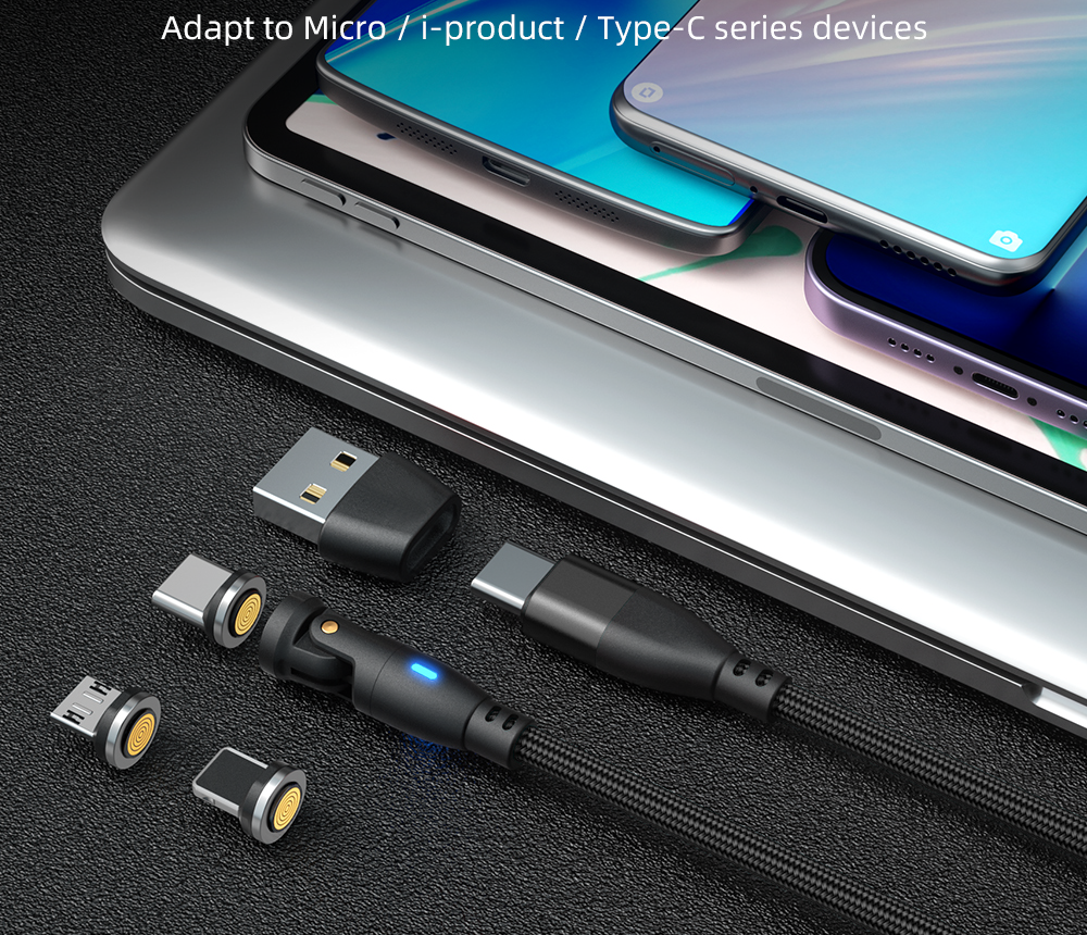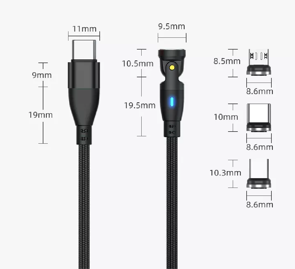 360度+180度の首振り構造/Type-C/USB/Micro/Lightning/60W/QC3.0/強靭なナイロン被覆/長さ1M/お得な2セット