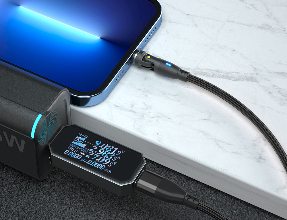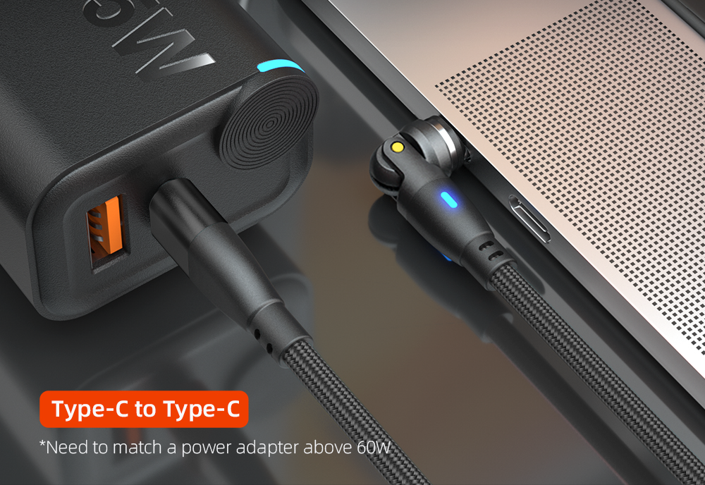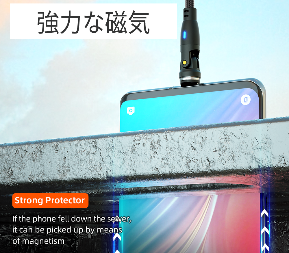 端子はApple社のMagSafeのようにマグネット式でスムーズに脱着可能。一般的な充電ケーブルは、抜き差しがめんどくさいと思っている方におすすめです。