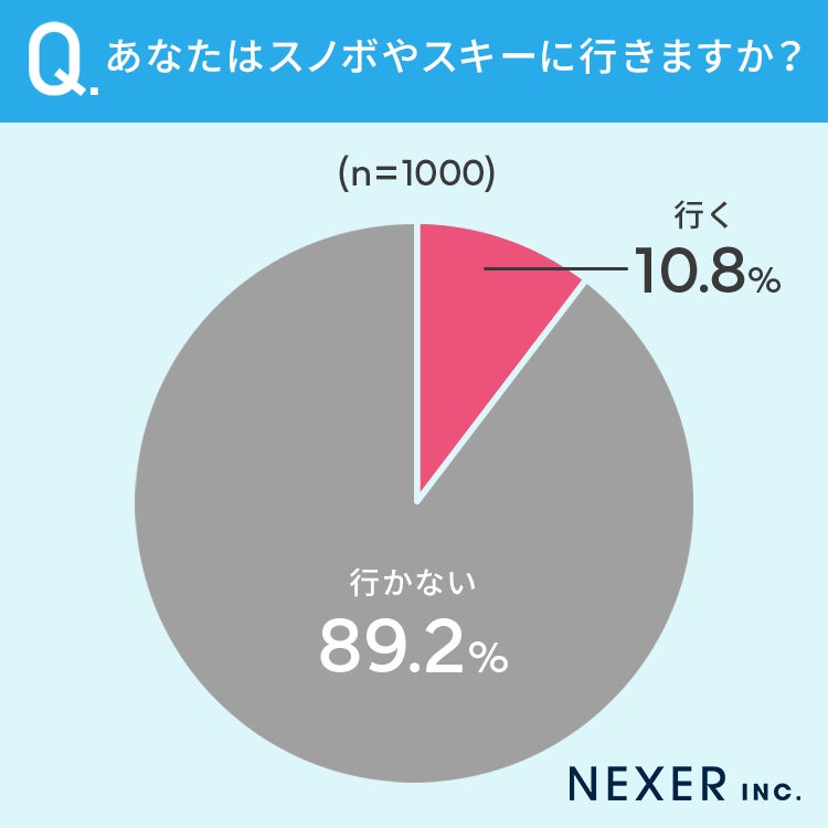 今回のアンケート回答者は、およそ10%の方がスノボやスキーに行くようです。
