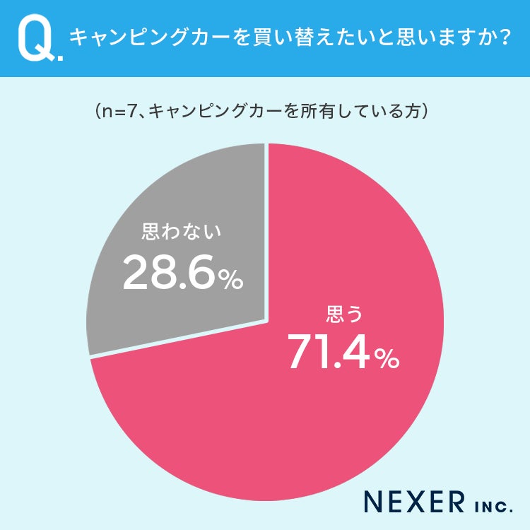 71.4%の方が、キャンピングカーを買い替えたいと「思う」と回答しています。
