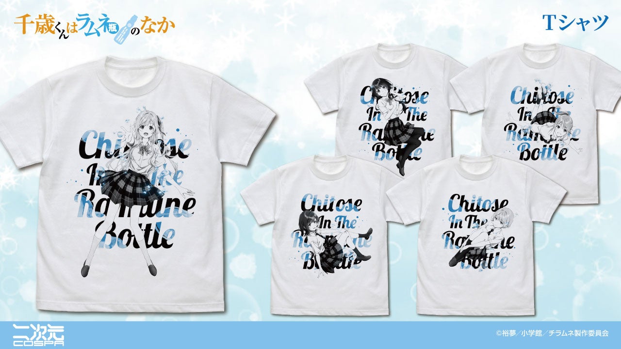 TVアニメ『千歳くんはラムネ瓶のなか』より、柊夕湖、内田優空、青海陽、七瀬悠月、西野明日風 れぞれの「Tシャツ」「アクリルスタンド」など新グッズが二次元コスパから登場です。