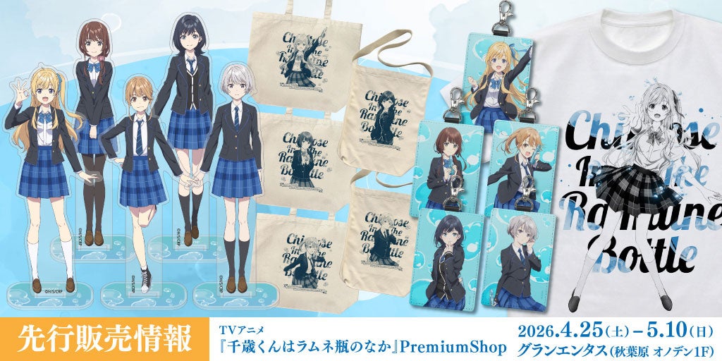 これらは2026年4月25日(土)~5月10日(日)グランエンタス[秋葉原/オノデンビル1F]にて開催の〈TVアニメ『千歳くんはラムネ瓶のなか』 PremiumShop〉での先行販売も決定。いち早く手に入るこの機会をお見逃しなく。