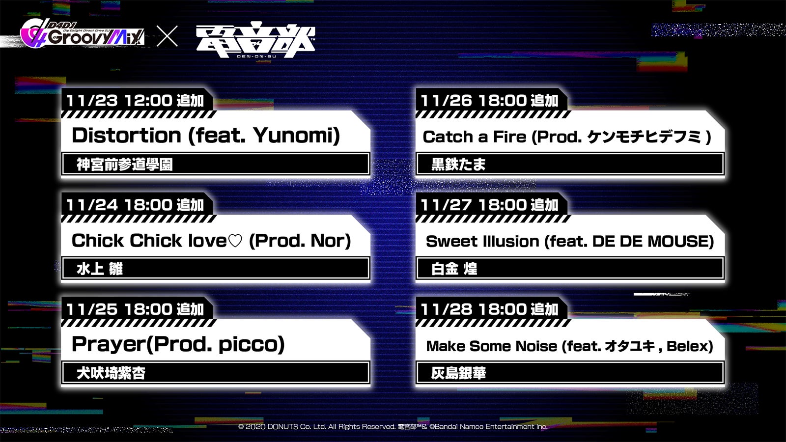 著作権表記 :© 2020 DONUTS Co. Ltd. All Rights Reserved. 電音部™& ©Bandai Namco Entertainment Inc.
