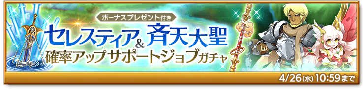 ■ガーディアン&ヴァルキリー必見!「セレスティア&斉天大聖確率アップ サポートジョブガチャ」販売中!