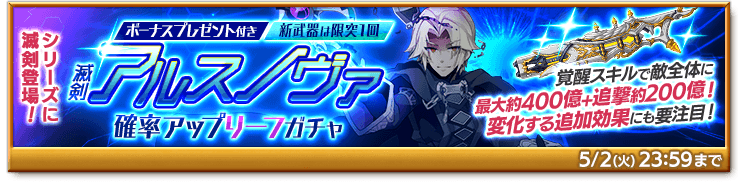 ■シリーズに滅剣登場!「滅剣アルスノヴァ確率アップ リーフガチャ」販売中!