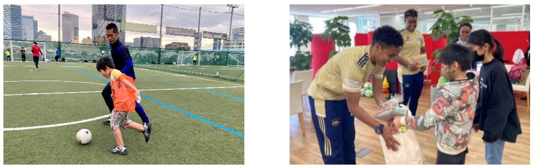 ▲2021年11月にひとり親家庭の方々を対象に行われた「親子サッカー教室」の様子