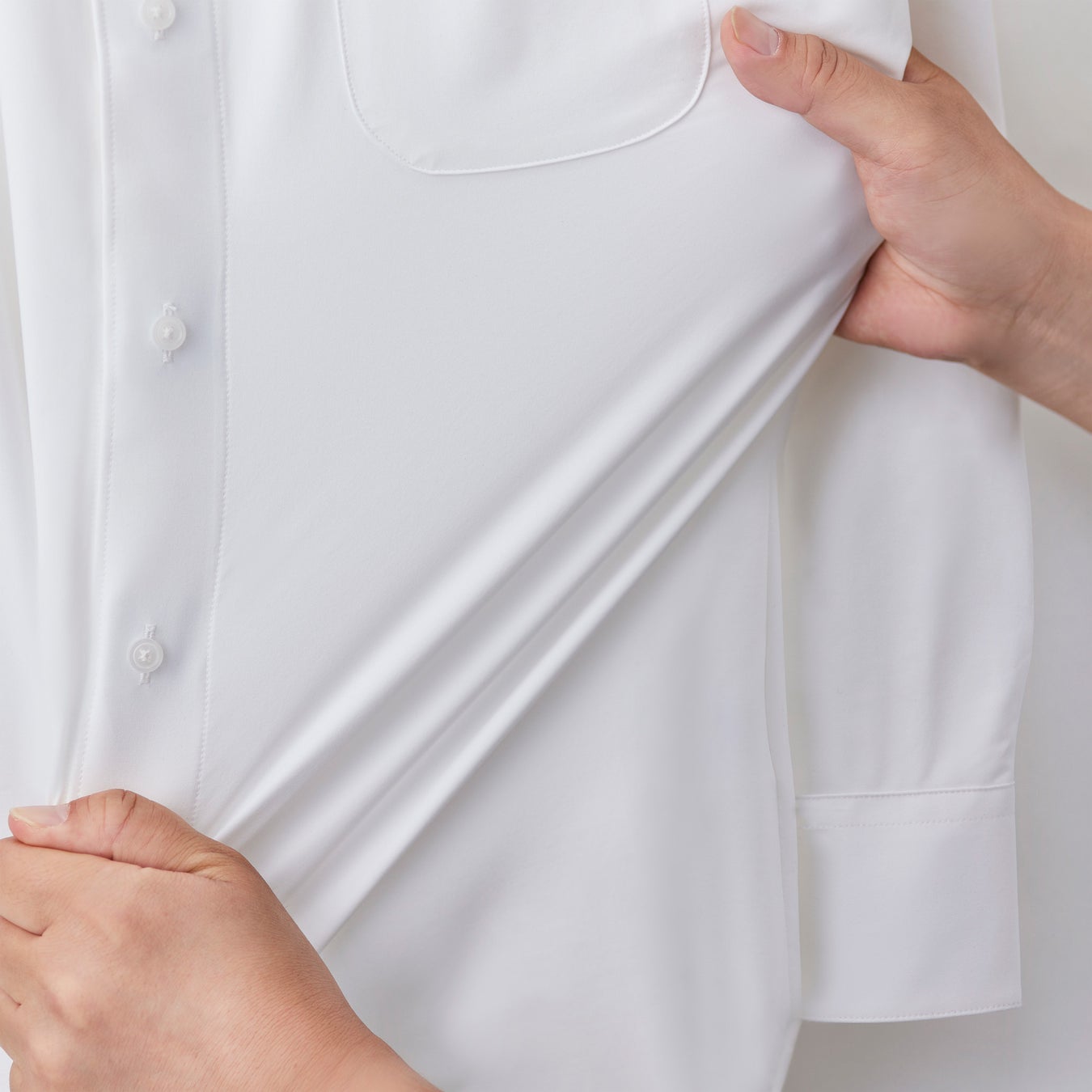 ストレッチ素材を採用しているため、シャツ独特な窮屈感も低く動きがとても楽。