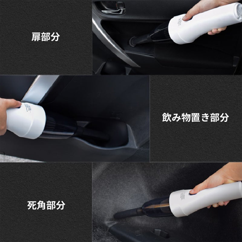持ち運びが簡単で、車内やお家の中の従来の掃除機では掃除しづらい部分のお掃除に適しています。