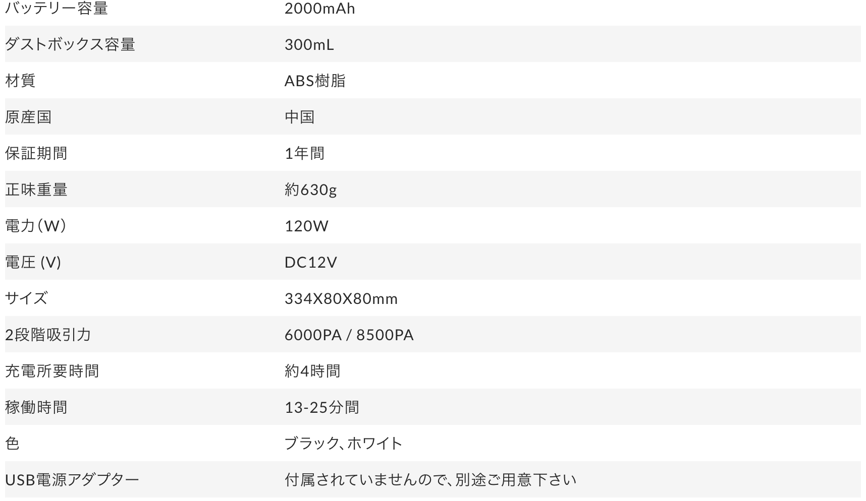最大8500PAはスマホを持ち上げることができる吸引力です。約630gと軽量なので、片手で楽々とご使用いただけます。