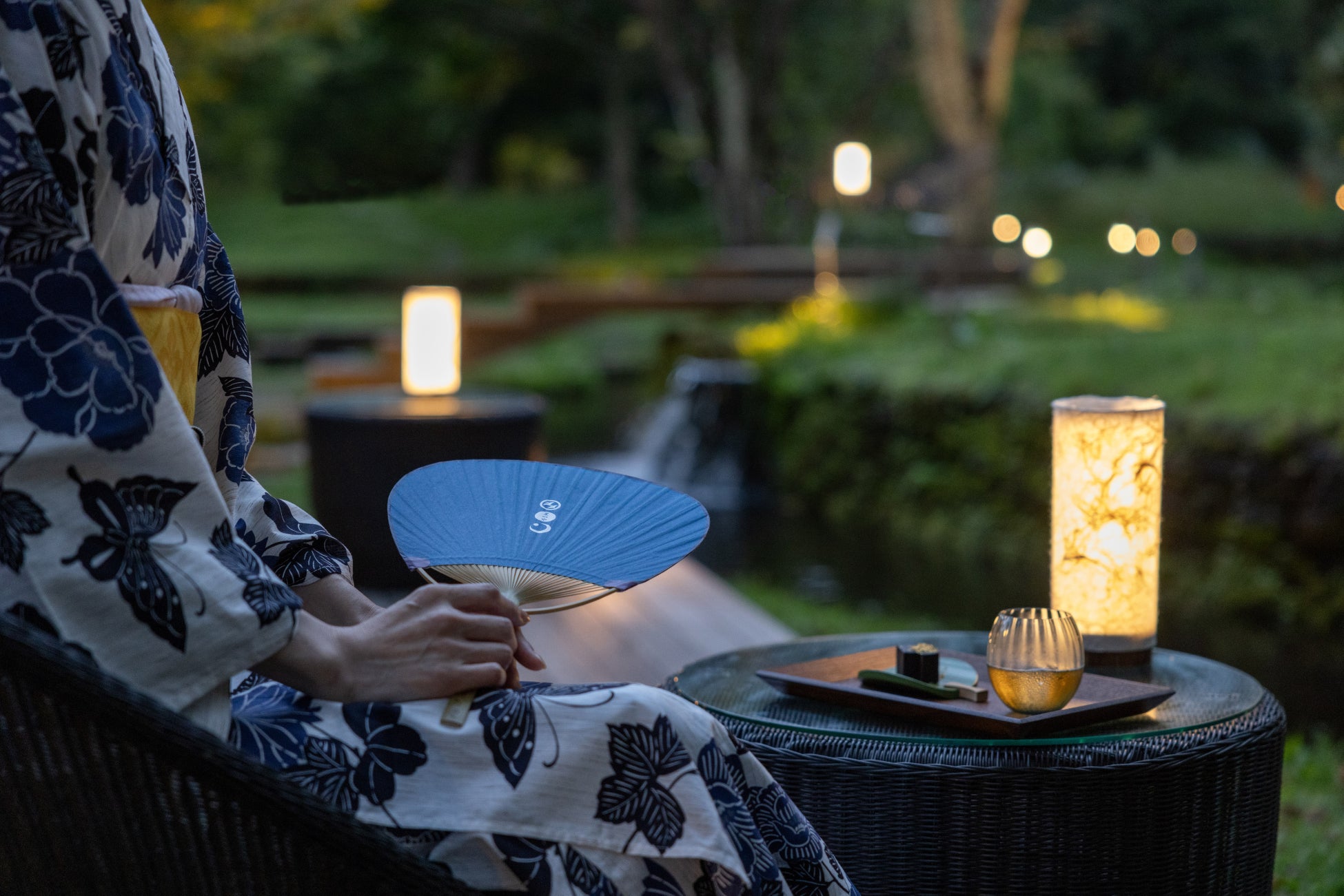 谷あいの地形と豊かな自然に抱かれ、陰翳礼賛に基づいたランドスケープが広がる星のや軽井沢。その近くを流れる清らかな小川のほとりでは、夏の限られた期間、無数の蛍が放つ幻想的な灯りが辺りを優しく包み込みます。せせらぎの音や草木の香り、そして目に映る闇夜に浮かぶ蛍の光が、日本の原風景を静かに思い起こさせ、心安らぐひとときを過ごせます。