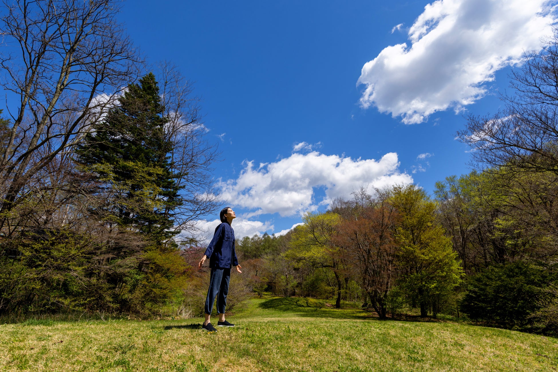 軽井沢の清々しい夏の朝、木漏れ日が優しく降り注ぐ中で行うのびのび深呼吸は、腹式呼吸を取り入れた星のや軽井沢オリジナルのストレッチです。夏の期間は、360度緑に囲まれた開放的な屋外で開催するため、避暑地軽井沢ならではのクールケーションを体験できます。また、清らかな夏の朝の空気をゆっくりと吸い込み、心身が心地よく目覚めていくのを感じられます。