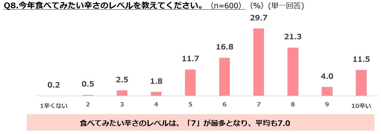 ・食べてみたい辛さのレベルは、「7」が最多となり、平均も7.0。