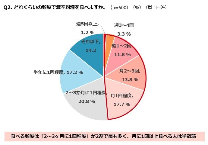 ・食べる頻度は「2~3ヶ月に1回程度」が2割で最も多く、月に1回以上食べる人は半数弱。