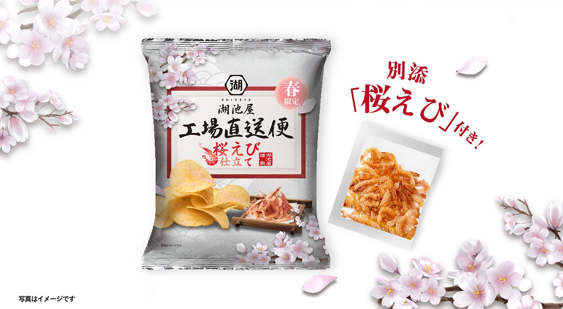 【季節限定】人気の「湖池屋 工場直送便 ポテトチップス」から特別なシリーズが登場! 「湖池屋 春の工場直送便 ポテトチップス 桜えび仕立て」を3月10日(月)より湖池屋オンラインショップで受注販売開始