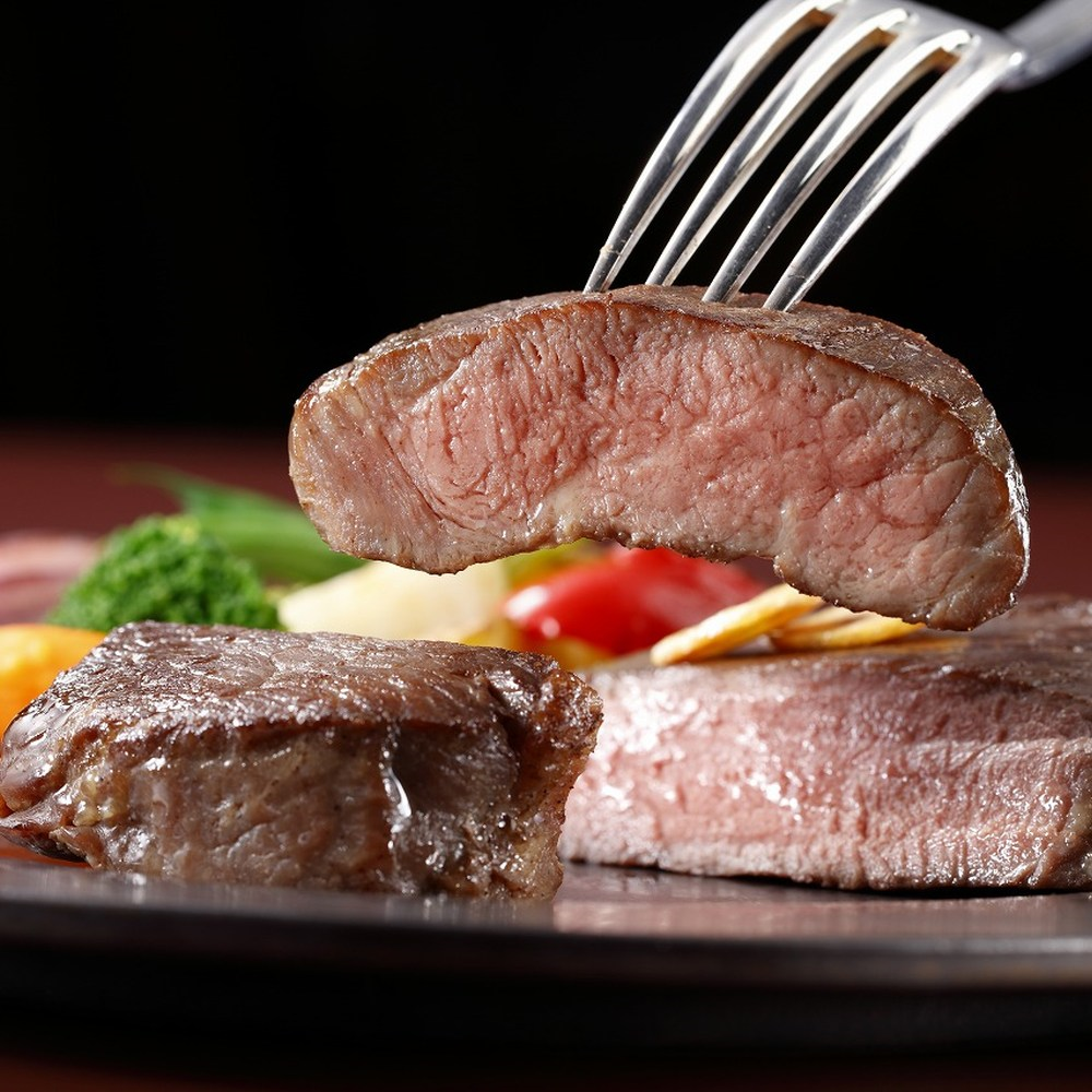 昆布を巻いて2⽇間熟成。旨味が凝縮した、まろやかな⾚⾝ステーキ