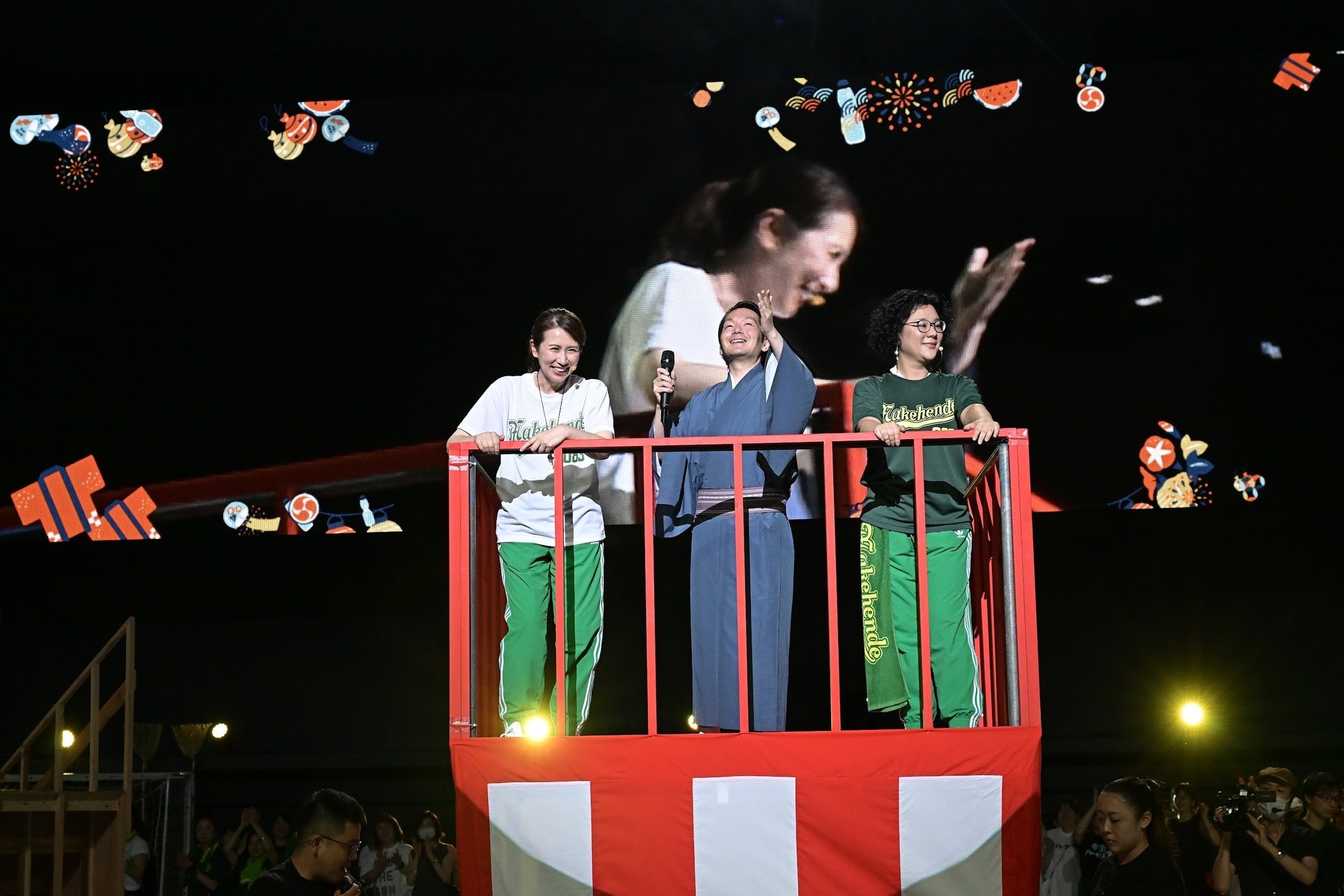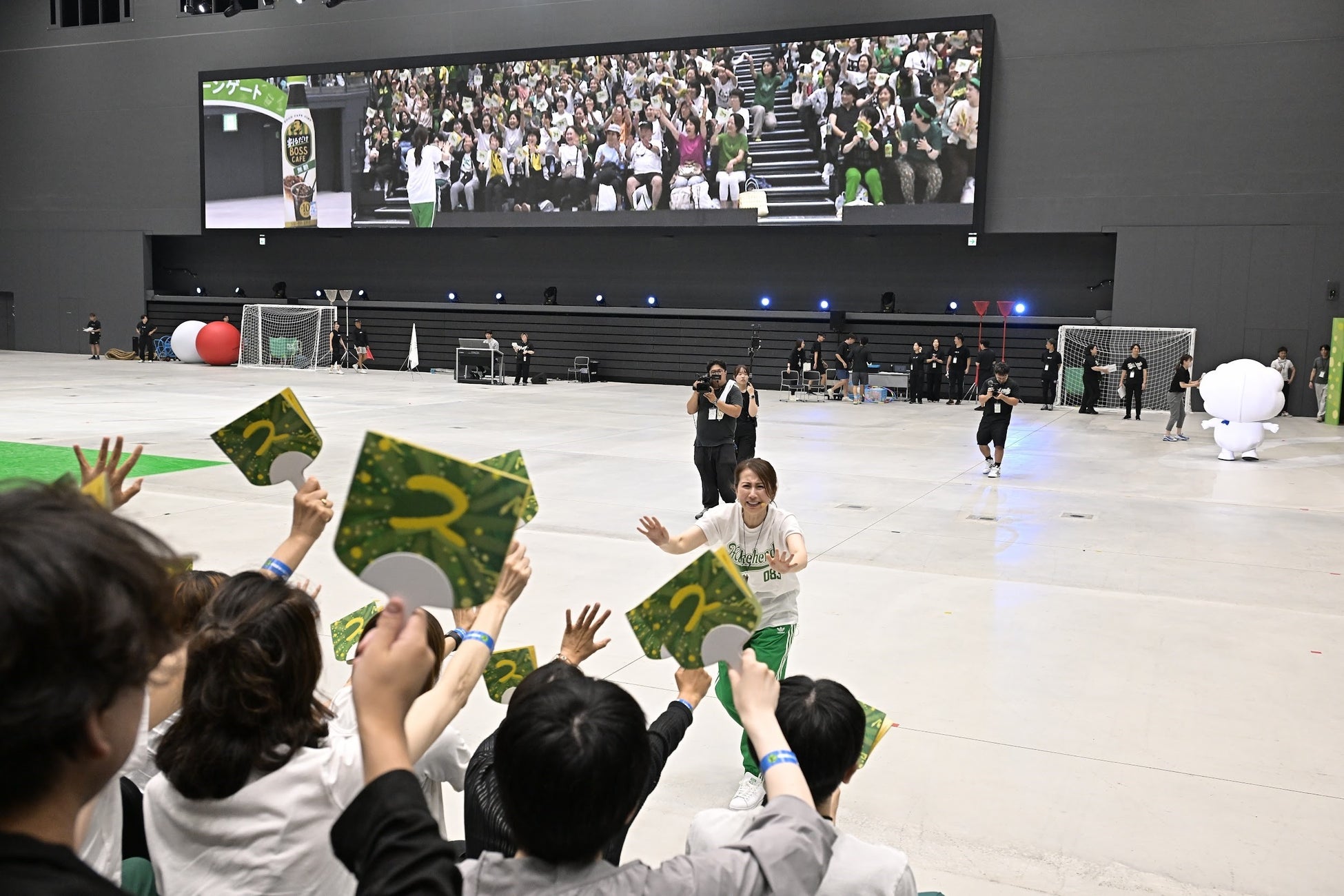 堀井美香考案の「〝ダンシング〟玉入れ」に挑戦し、普段は決して見ることの出来ない表情が大型ビジョンに映し出され、温かい声援が飛び交いました。