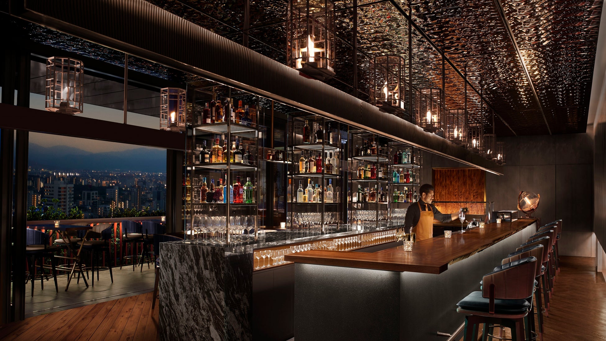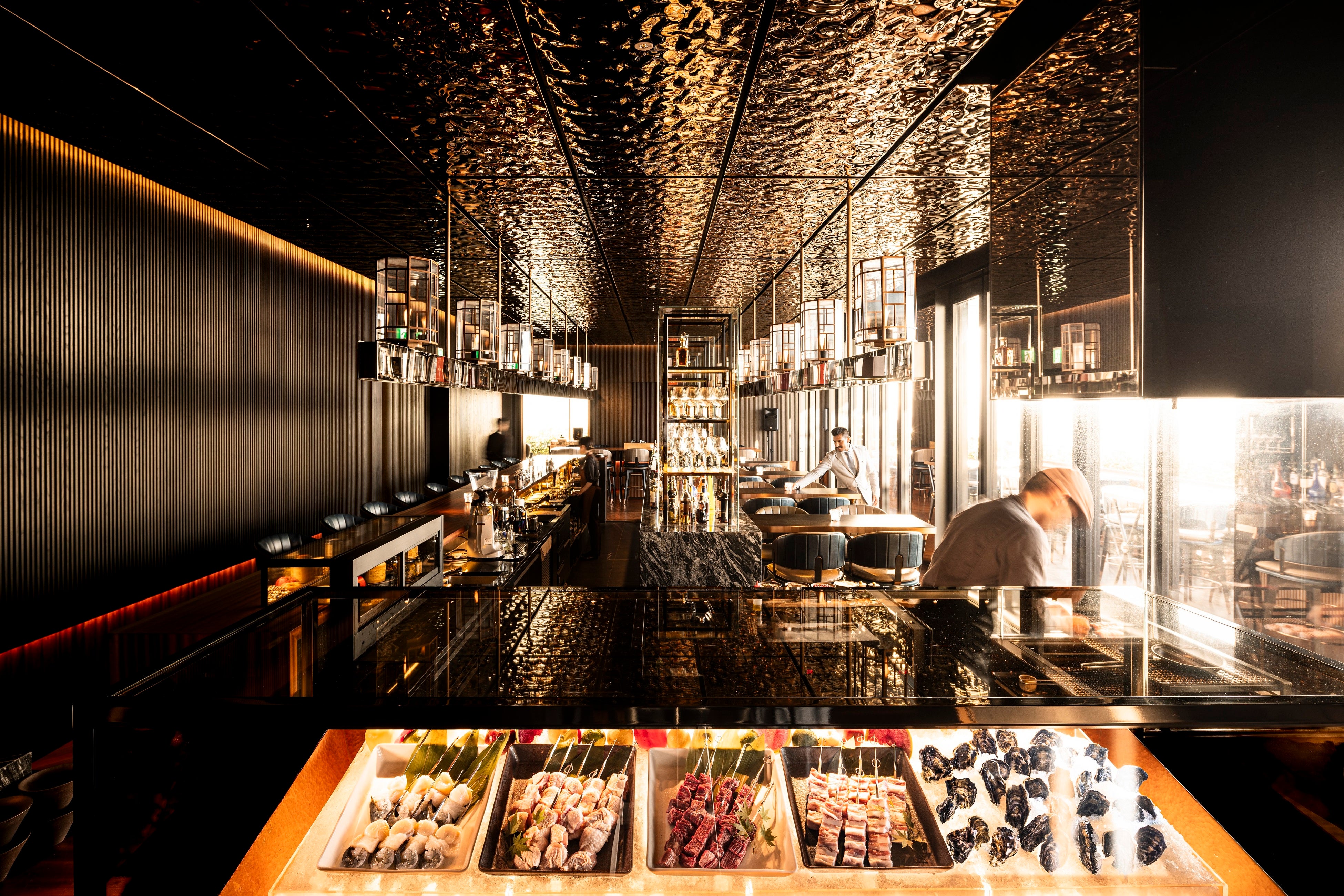 Bayでは、博多湾の眺望を借景としたシックなバー&ラウンジにて、炭火焼を中心とした料理、シグネチャーカクテル、DJが奏でる音楽をお楽しみいただけます。博多湾を行き交う船からデザインコンセプトの着想を得た心地の良い社交場は、貿易で使用されていた船の構造、パーツや曲線美を空間に取り込むことで、まるで実際の船内に乗り込んだかのような体験がゲストを待ちわびています。メインバーに隣接するテラス席からは実際に玄界灘のビューを眺めることができ、バーが玄界灘の風景と溶け込むように一体化した空間となっています。また、ラウンジエリアには2つのプライベートルームのご用意があり、宿泊客だけでなく地元の方々も楽しめる空間です。