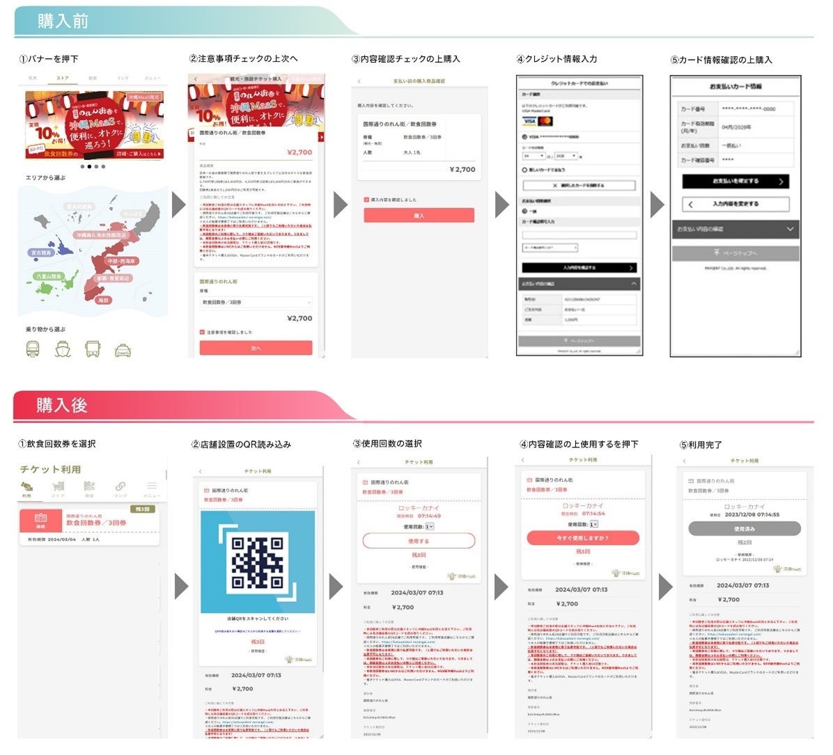 今回提供を開始したプレミアム付き飲食回数券は、「沖縄MaaS」にユーザー登録した国内外の観光客や地元住民がWEB上で事前に飲食回数券を購入することで、スパイスワークスホールディングスが運営する国際通りのれん街でお得に飲食をお楽しみいただける新機能です。また、事業者に対しては、初期費用を無料とすることでキャッシュレス対応を支援し、飲食回数券の購入から利用までをスマホで完結させることで煩雑な売上管理、精算作業を効率化します。