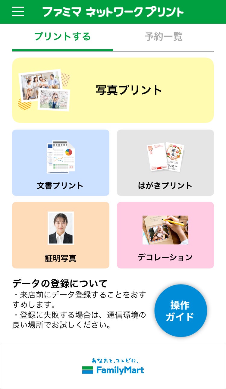 写真、文書の印刷から証明写真のプリント、はがきやシールの作成にいたるまで、すべてのサービスを会員登録不要で手軽にご利用いただけます。