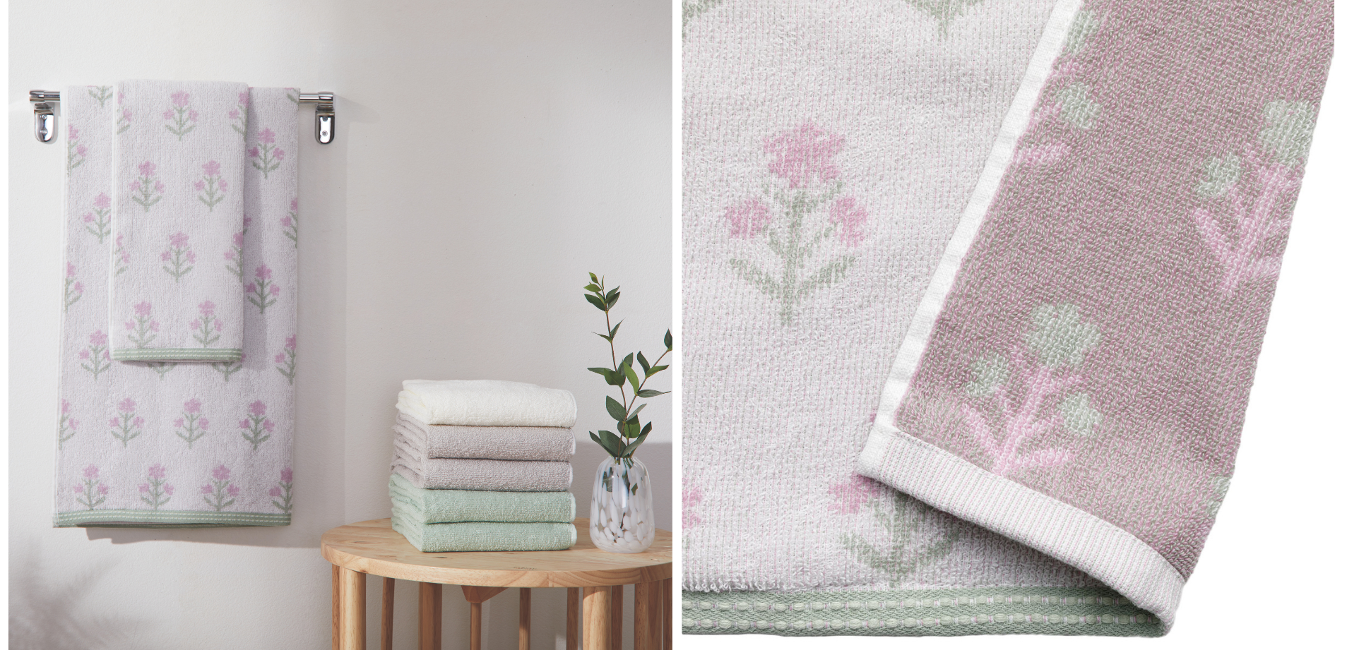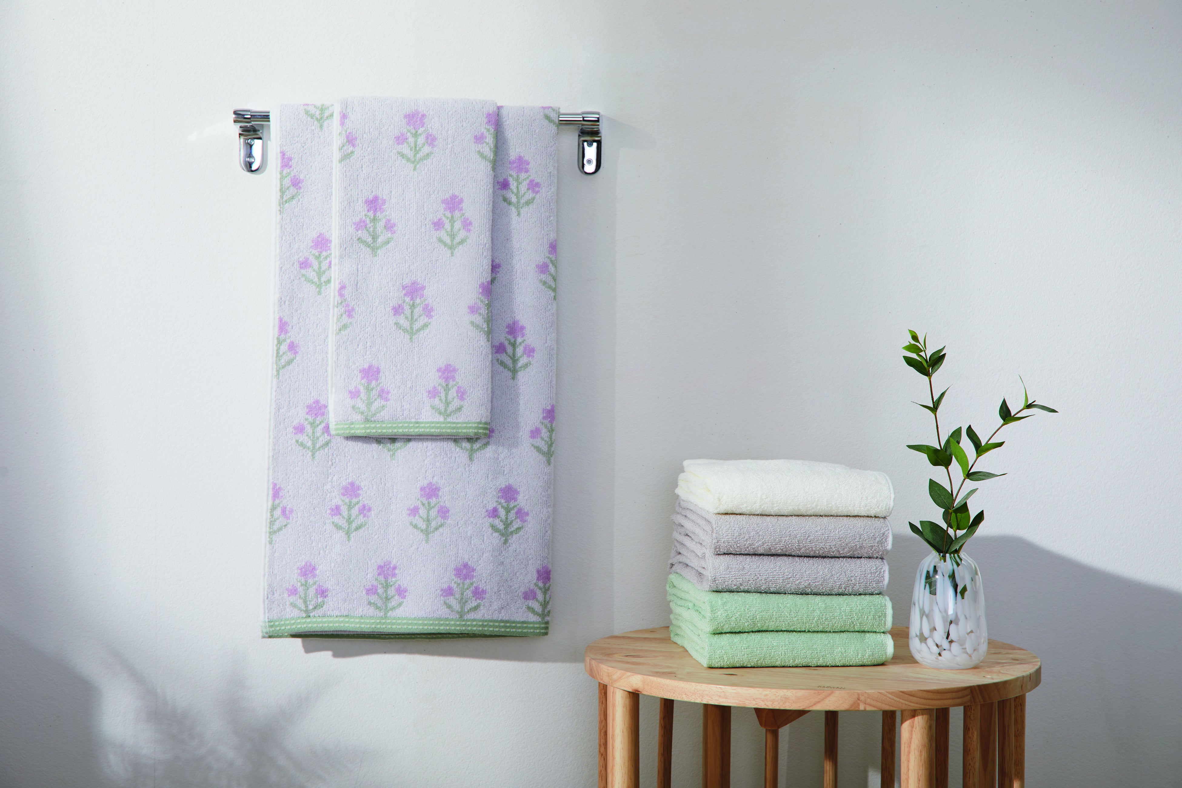 ふんわりやさしい色合いが空間になじみやすく、気軽に取り入れられる春色タオル。
