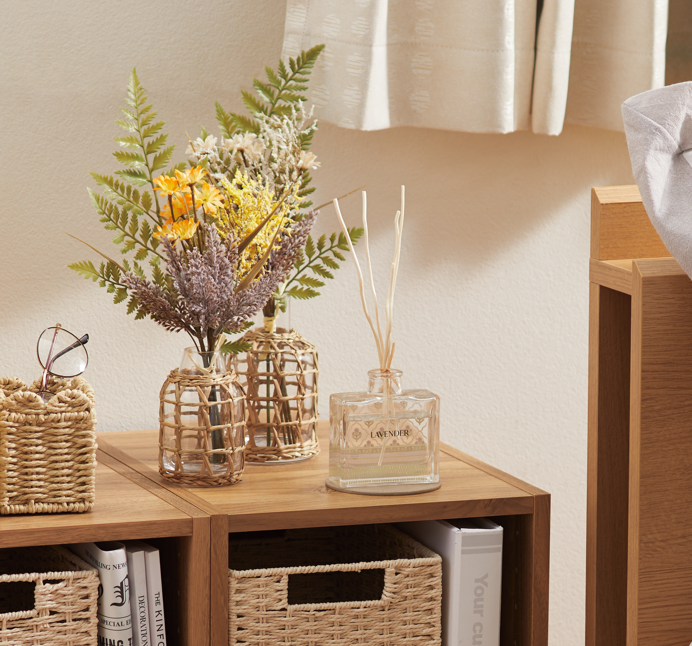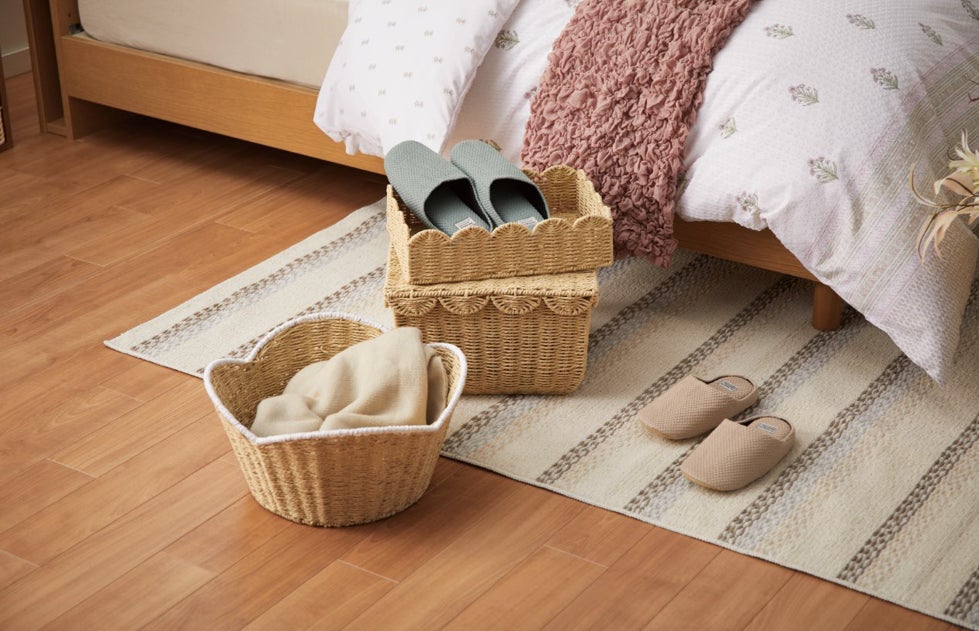 天然素材のやさしい風合い。床に置くだけでナチュラルな収納に。