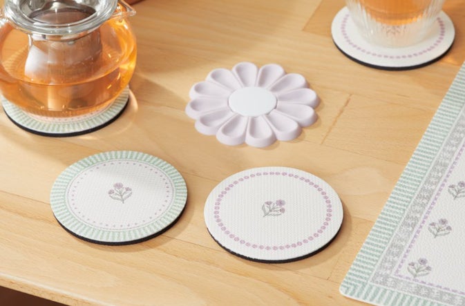 お花のかたちがキュートなコースター。滑りにくいシリコン素材。
