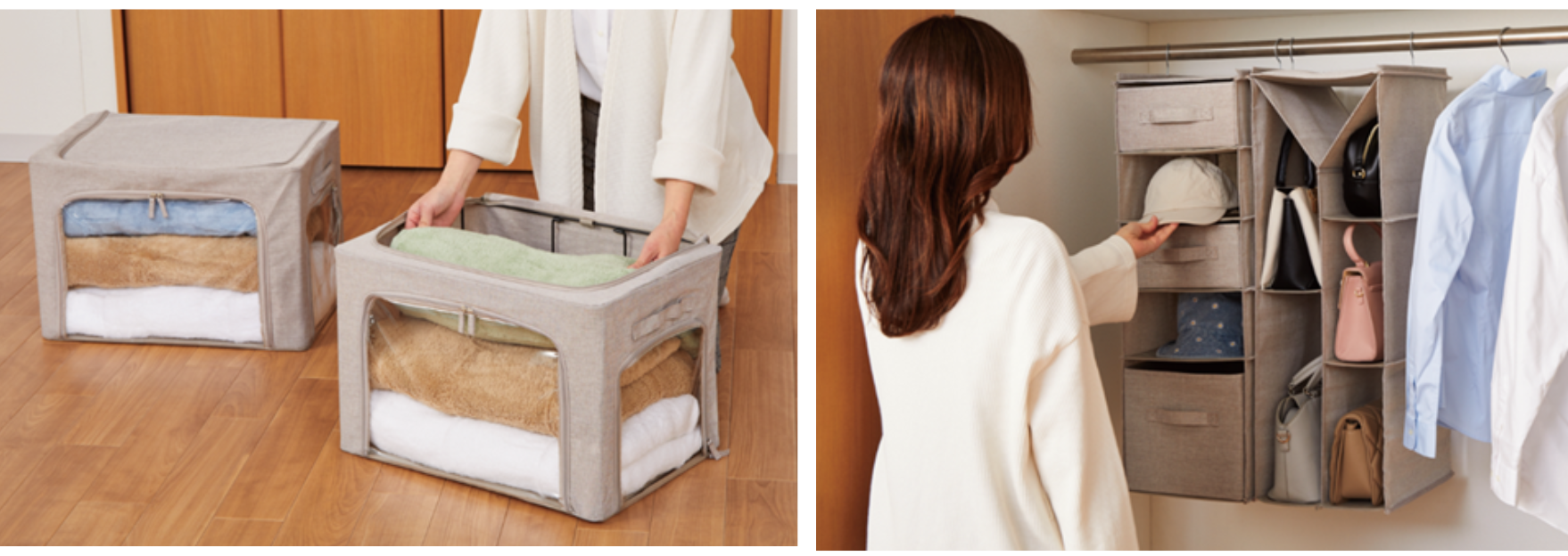 まずは、衣替えで冬物を「しまって」、クローゼットの中を整理整頓。出し入れしやすい収納アイテムを使うと、新しいシーズンの毎日が便利になります。