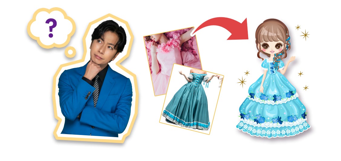 河合郁人さんが考案した“デート服”コーディネートをアバター化。 華やかで上品なフェミニン系?それとも洗練されたエレガント系?