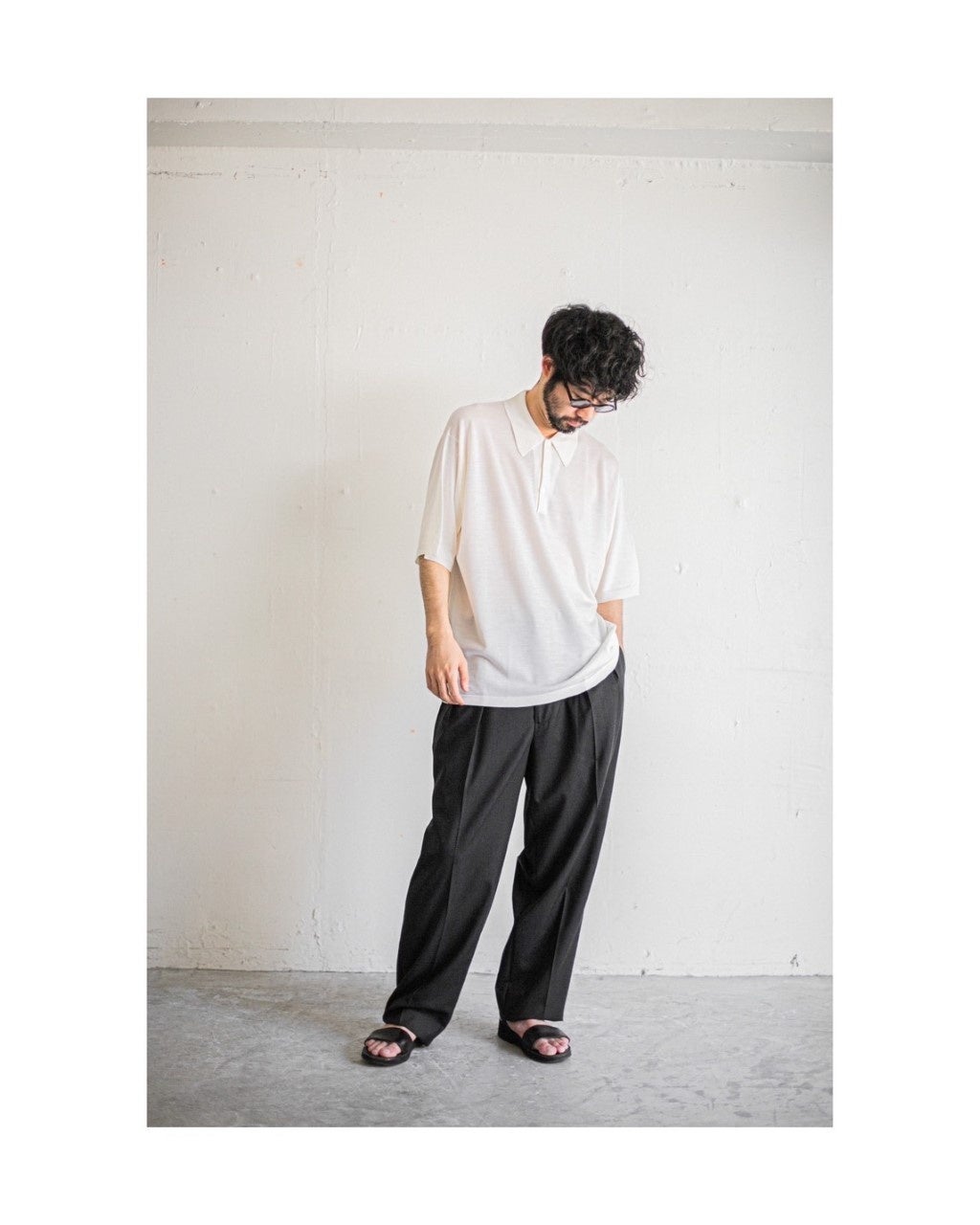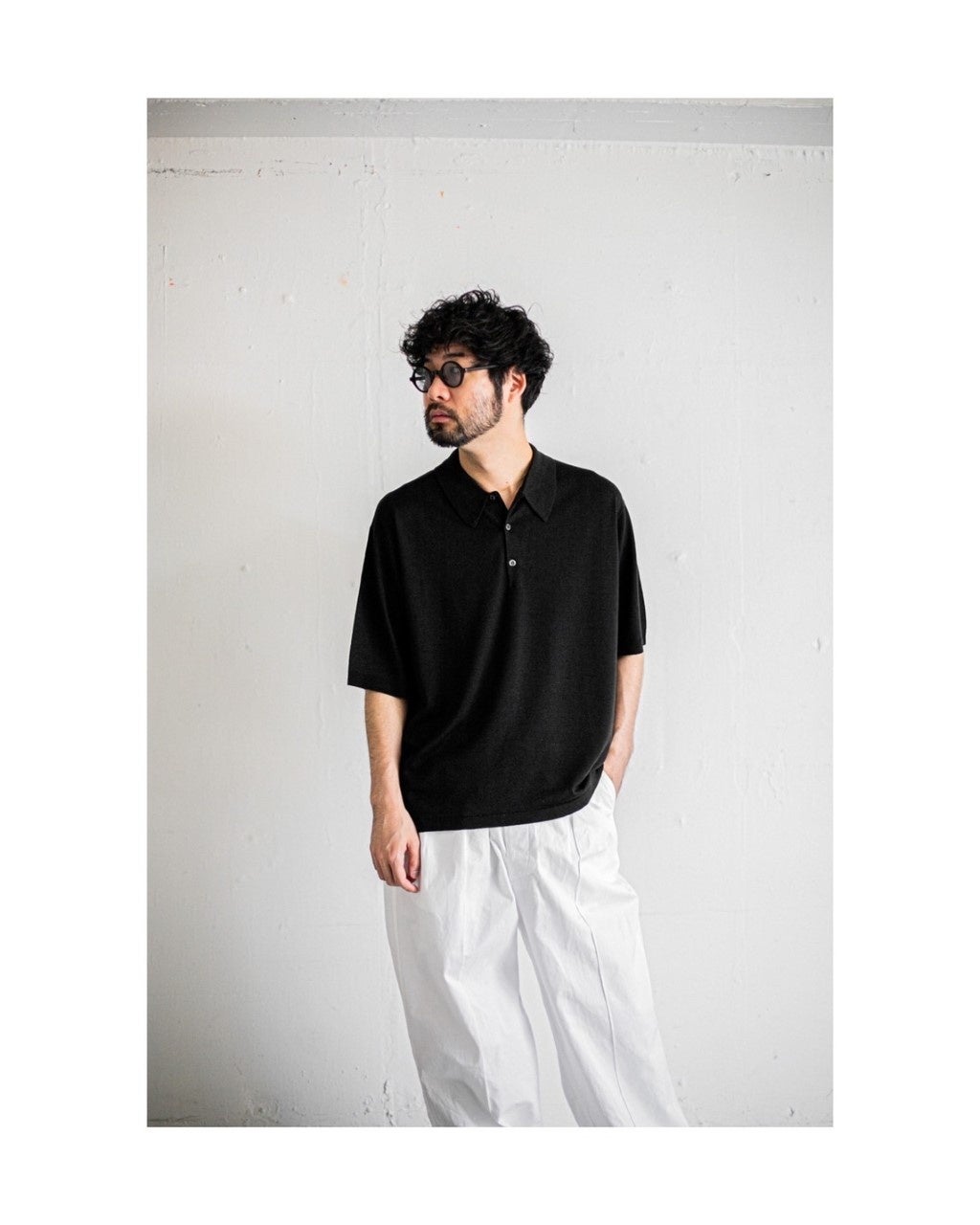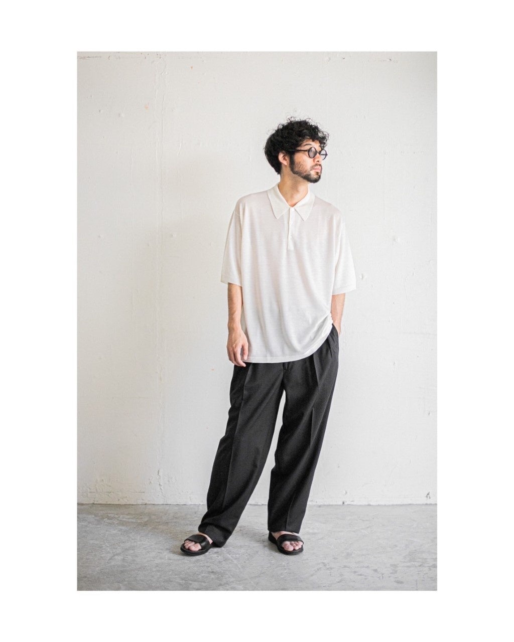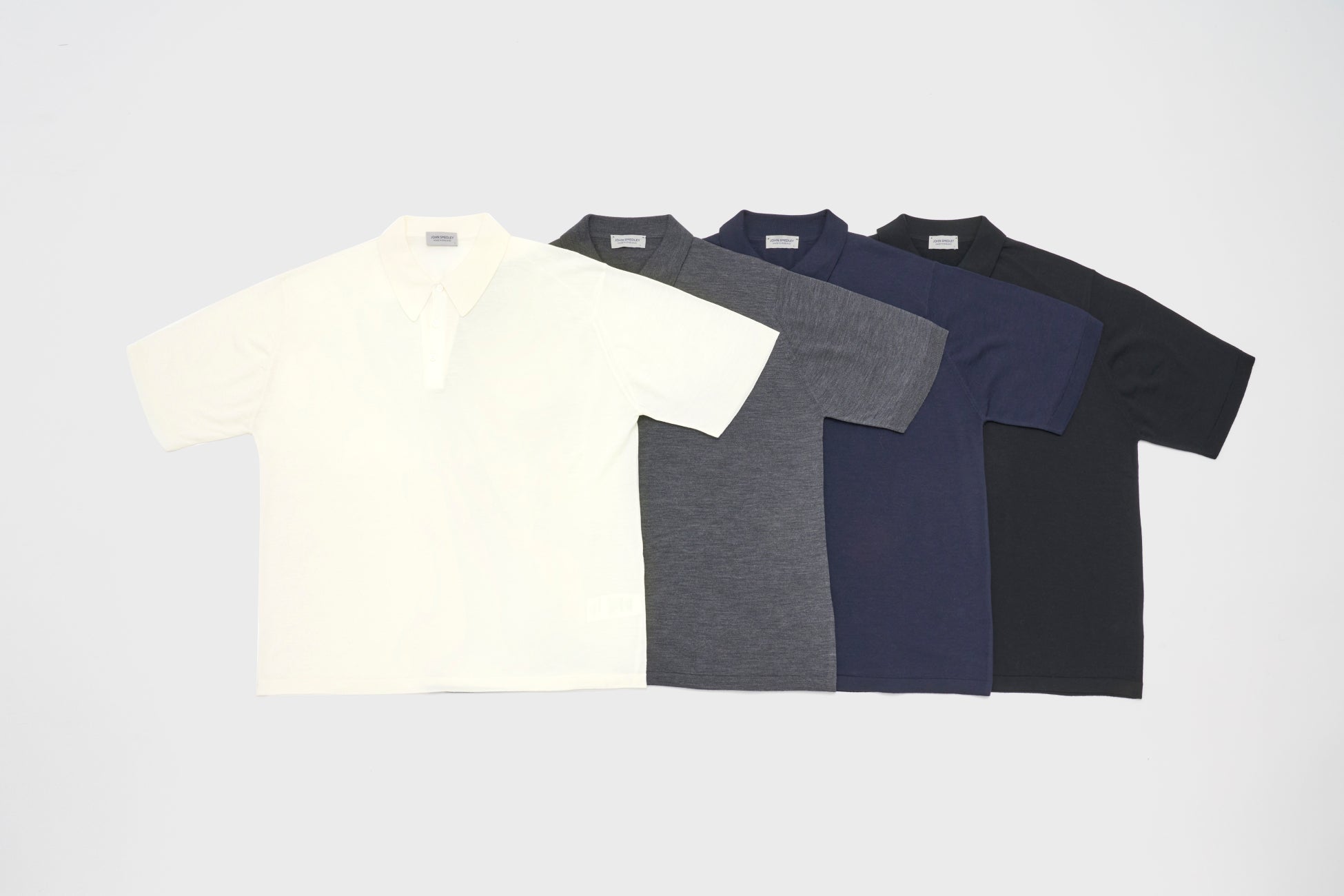 レショップでは、この夏のスタイルの中心に位置するアイテムとして、ジョンスメドレーの特別なポロシャツを提案する。定番のISISというモデルをベースに、オーバーサイズになりすぎない、程よくゆったりしたシルエット。美しい襟はそのまま残し、ちょうちん袖と裾のリブを無くすというアレンジを施した。そして定番のシーアイランドコットンではなく、メリノウールを用いている。