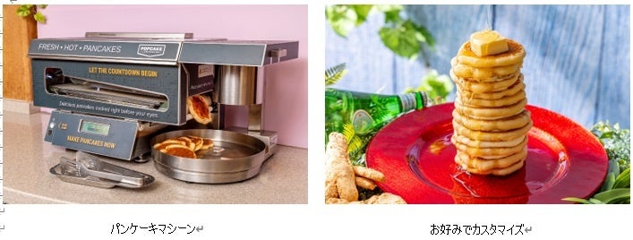 手のひらをマシーンにあてるだけで自動的にパンケーキが飛び出てくる「パンケーキマシーン」はメープルシロップをかけ、お好みのトッピングでカスタマイズできるのでお子様と一緒にお楽しみください。